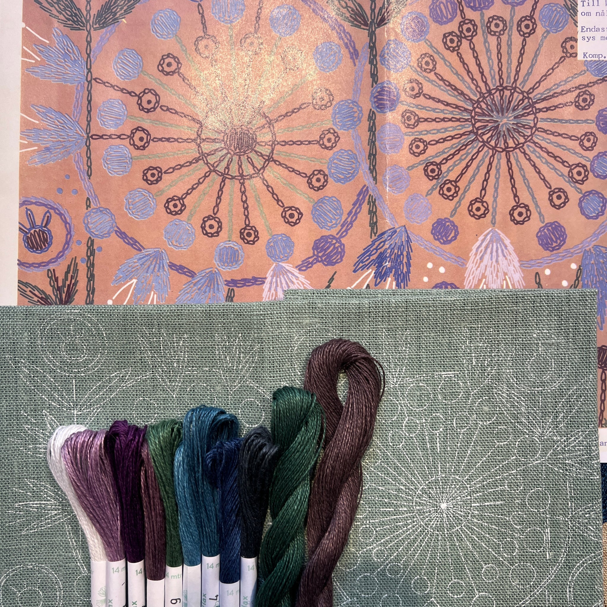 - A hand printed panel of beautiful linen, ca 50 x 50 cm. The design itself is XXXX