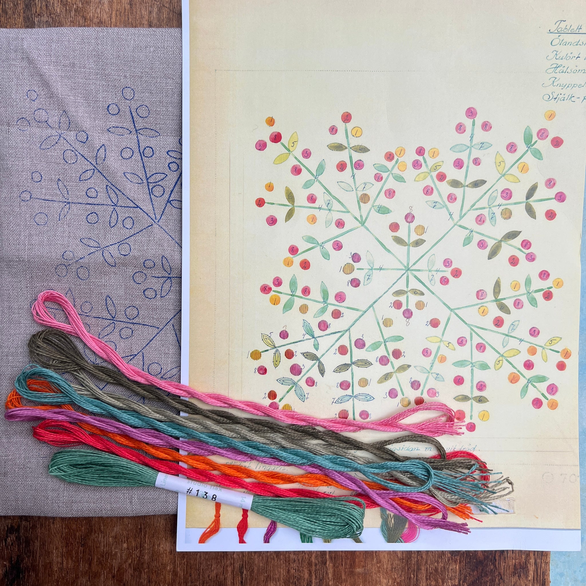 we've reprinted this as a small run kits on super soft linen napkins, 33 x 34 cm and Fine Linen fabric c 37 x 40 cm.
