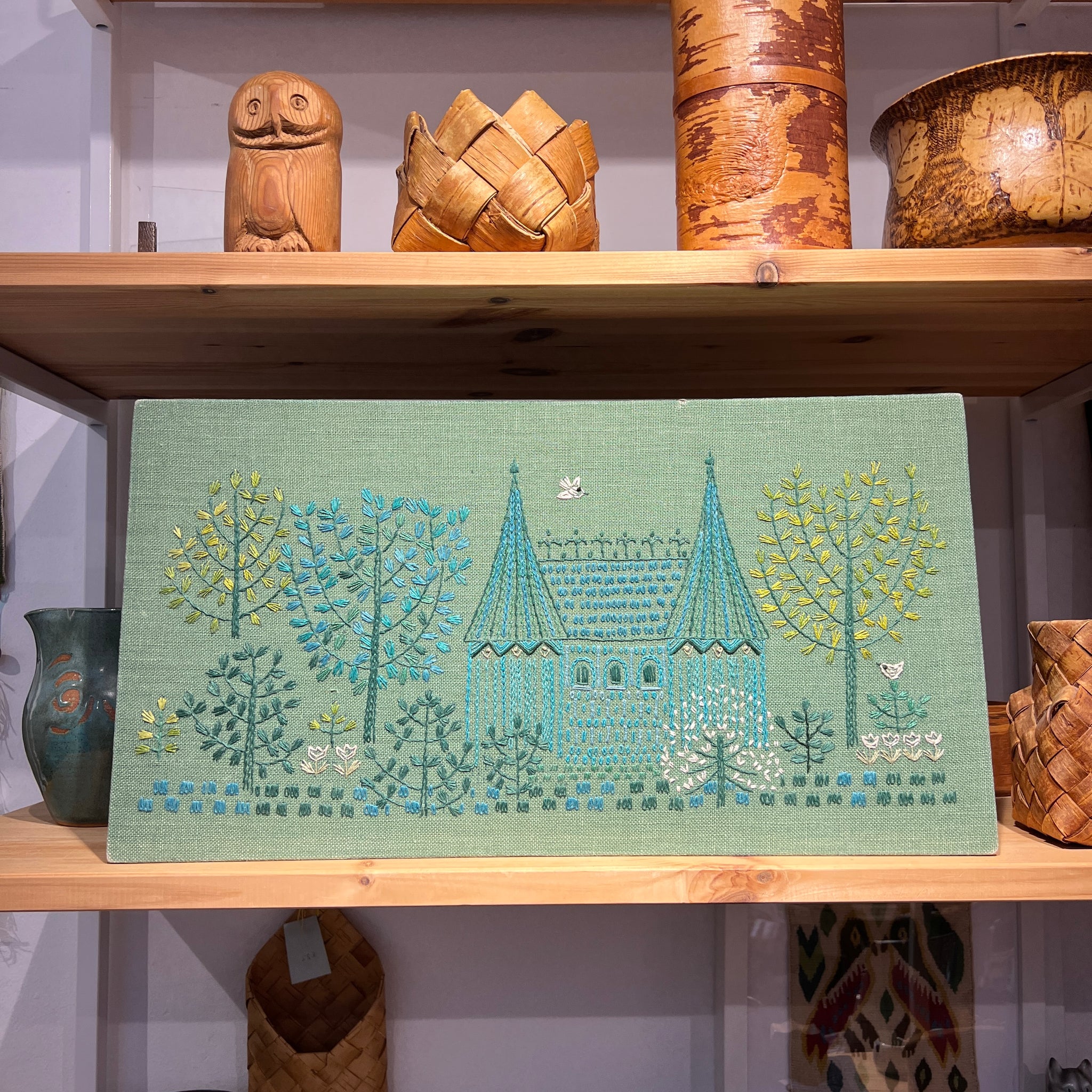 The finished embroidery in this listing is the original 1960s kit,