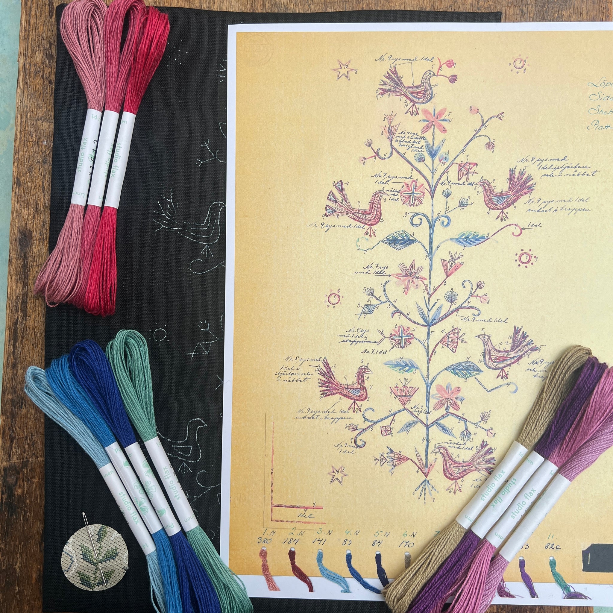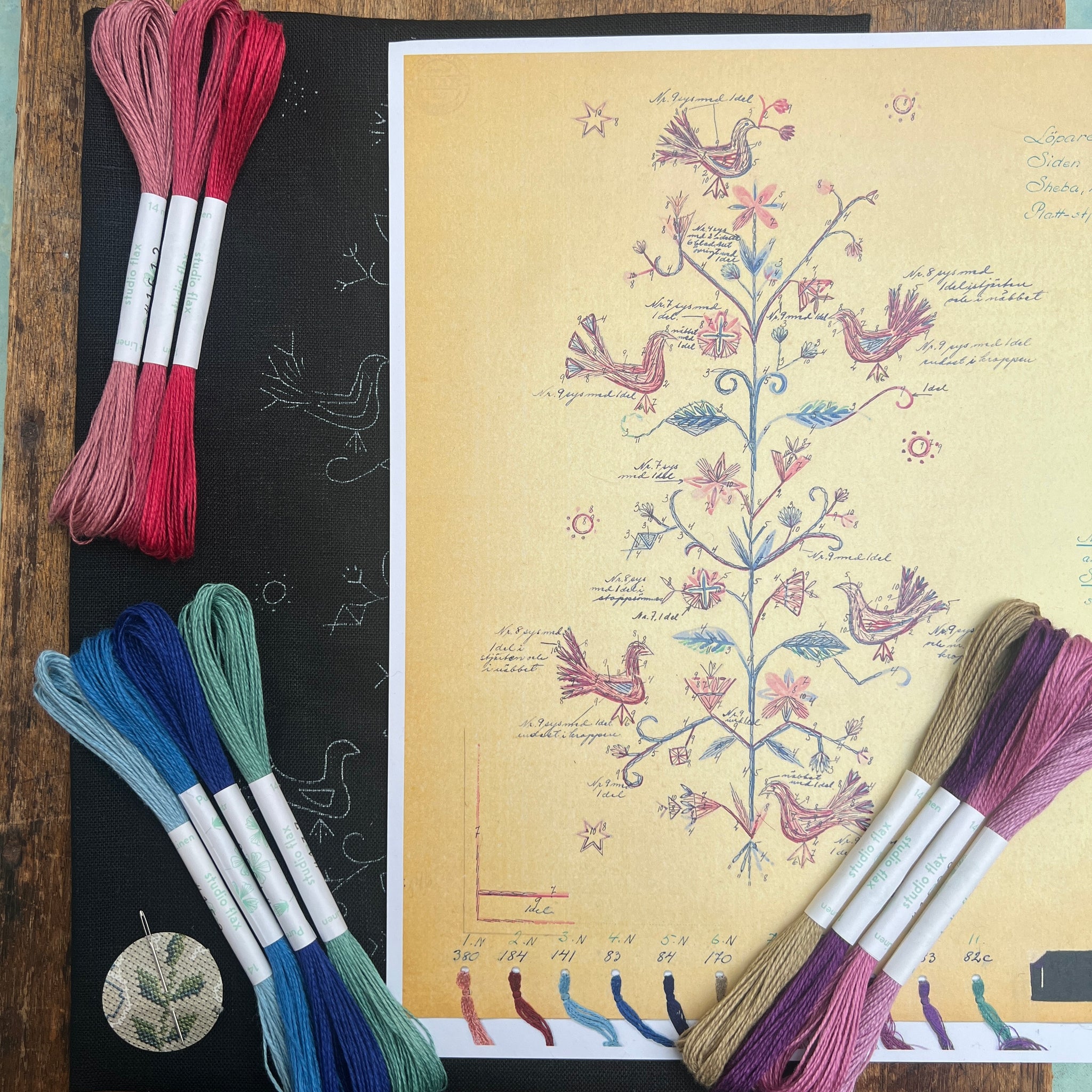 A larger print measuring on our heavier black linen, 40 x 50 cm: shipping out last week of November or earlier. This larger pattern measures 38 cm tall.