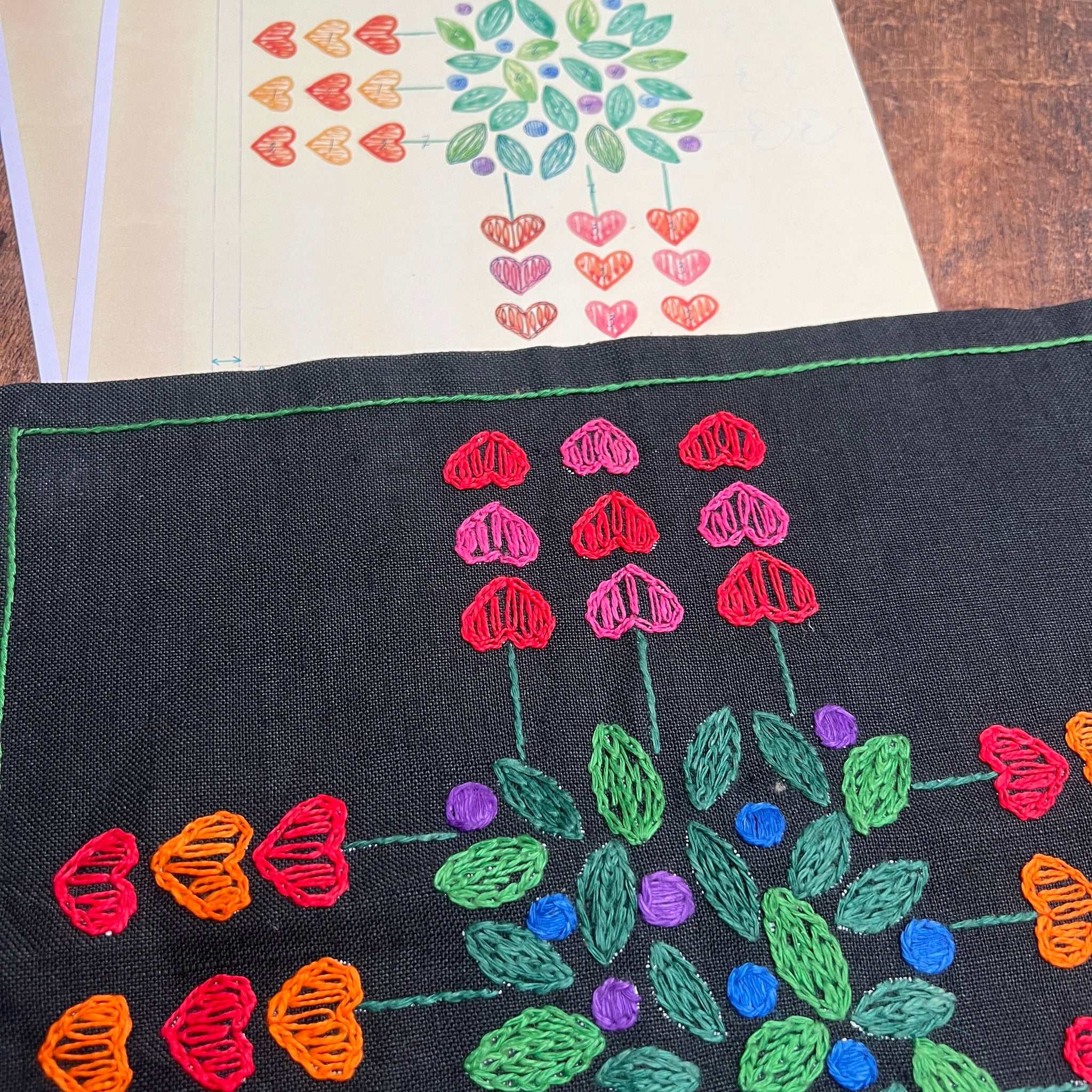 Embroider with satin-, stem-, chain stitch and lazy daisy