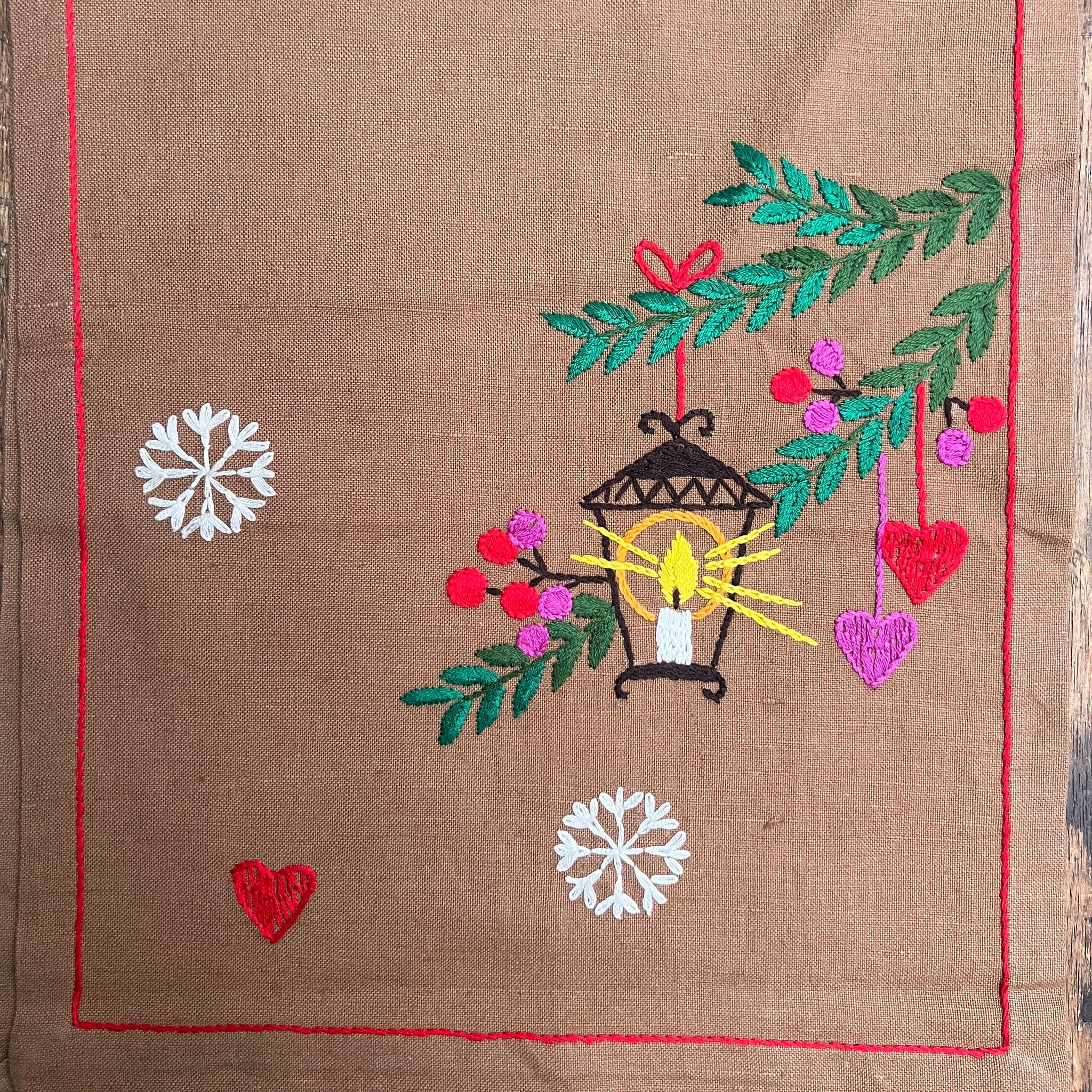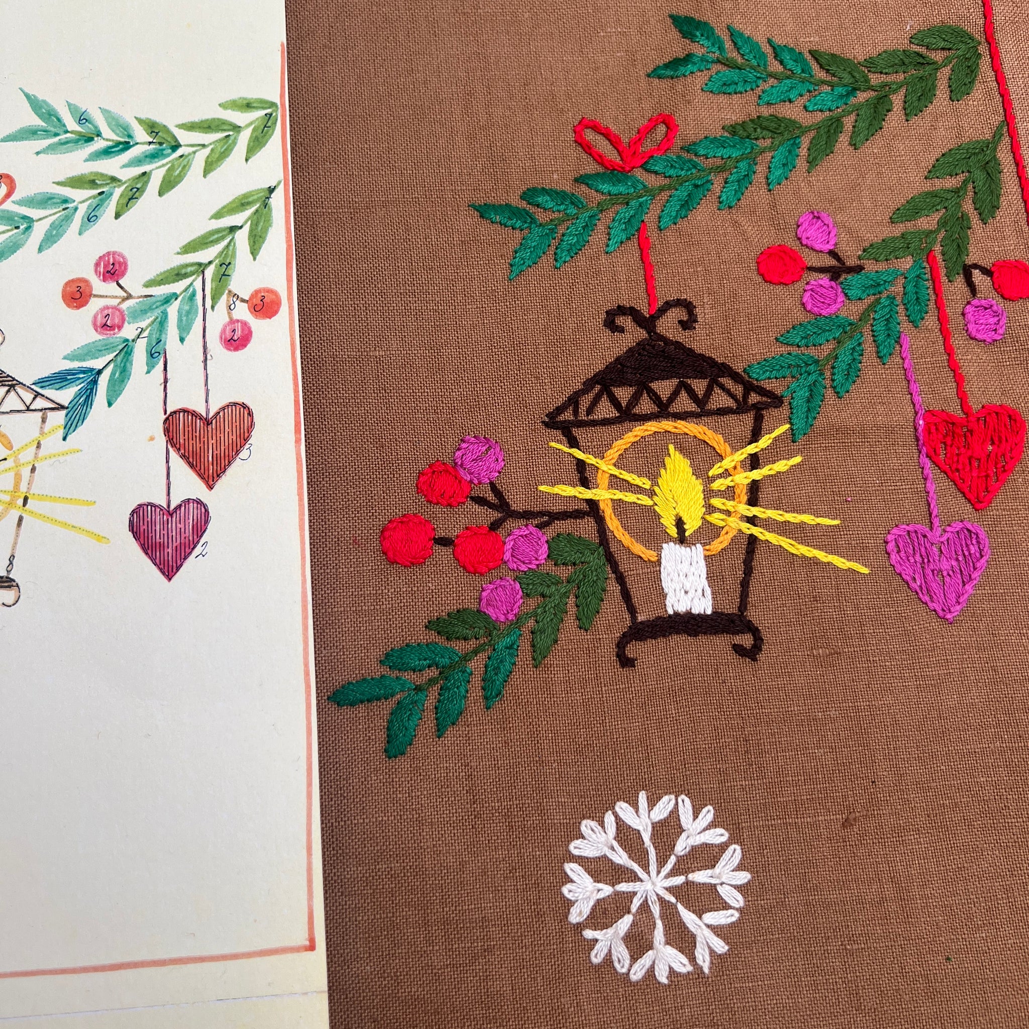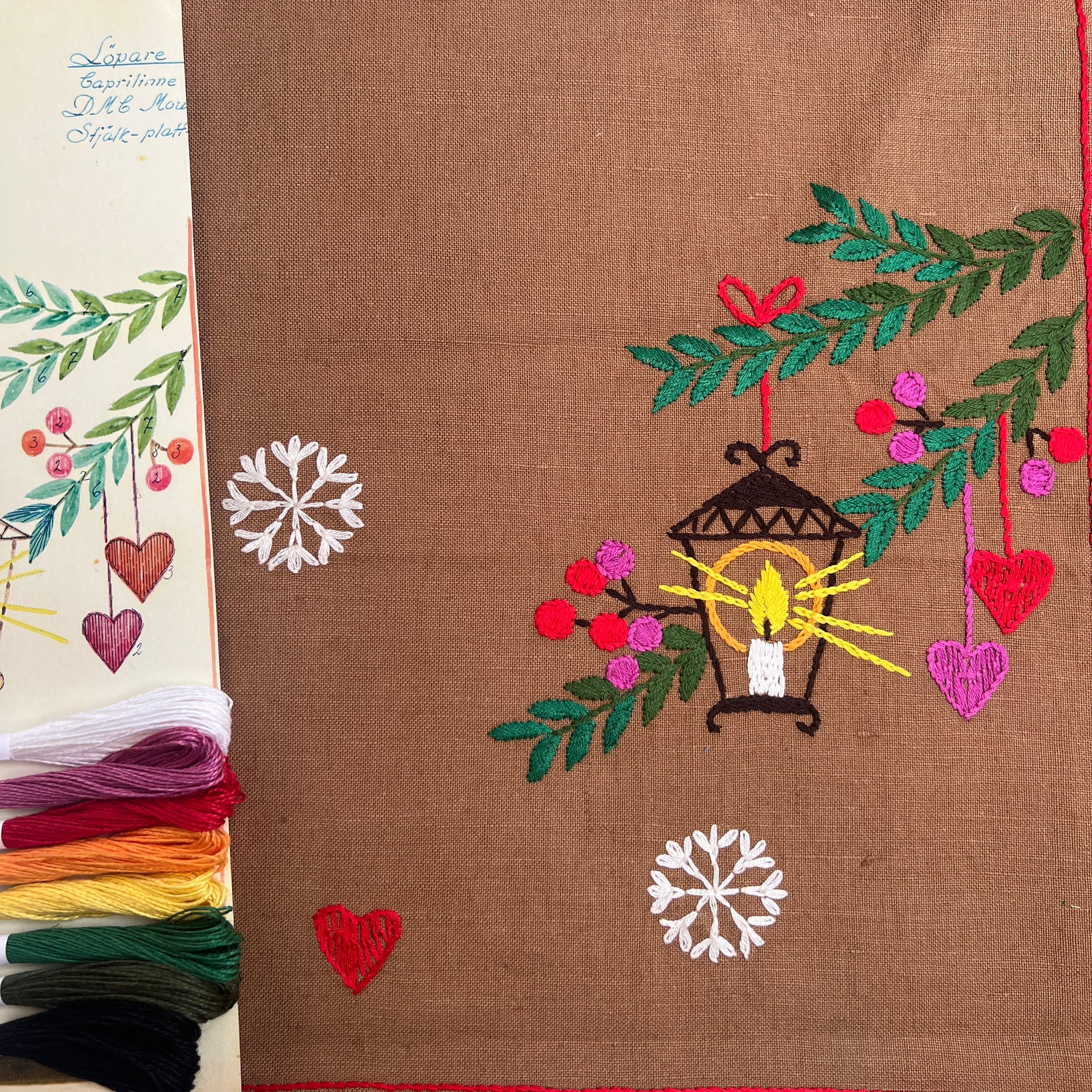 The linen measures 37 x 40 cm. This design is embroidered with linen threads in 8 colours: all included together with needle, instructions and a stitch card printed on the reverse of the pattern.