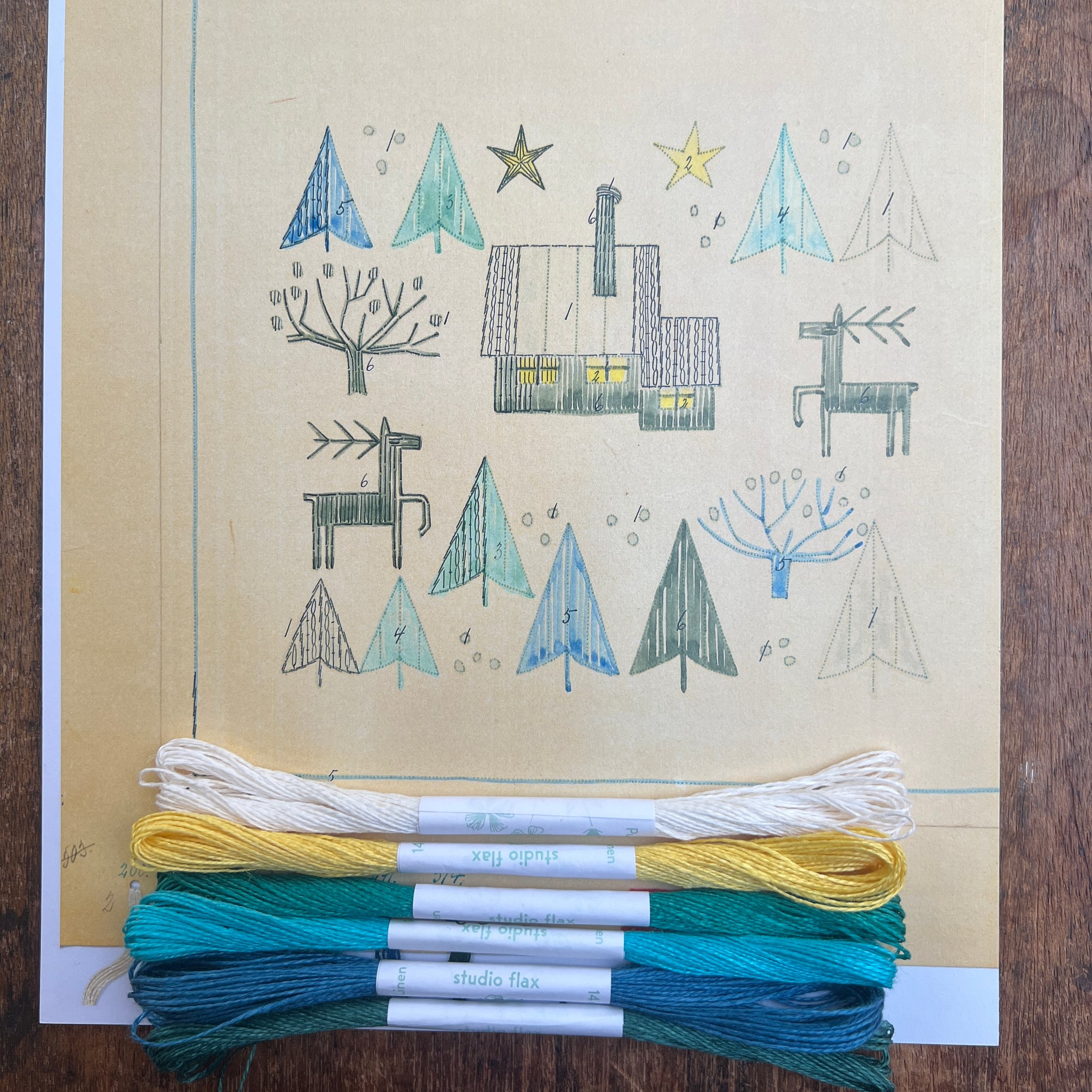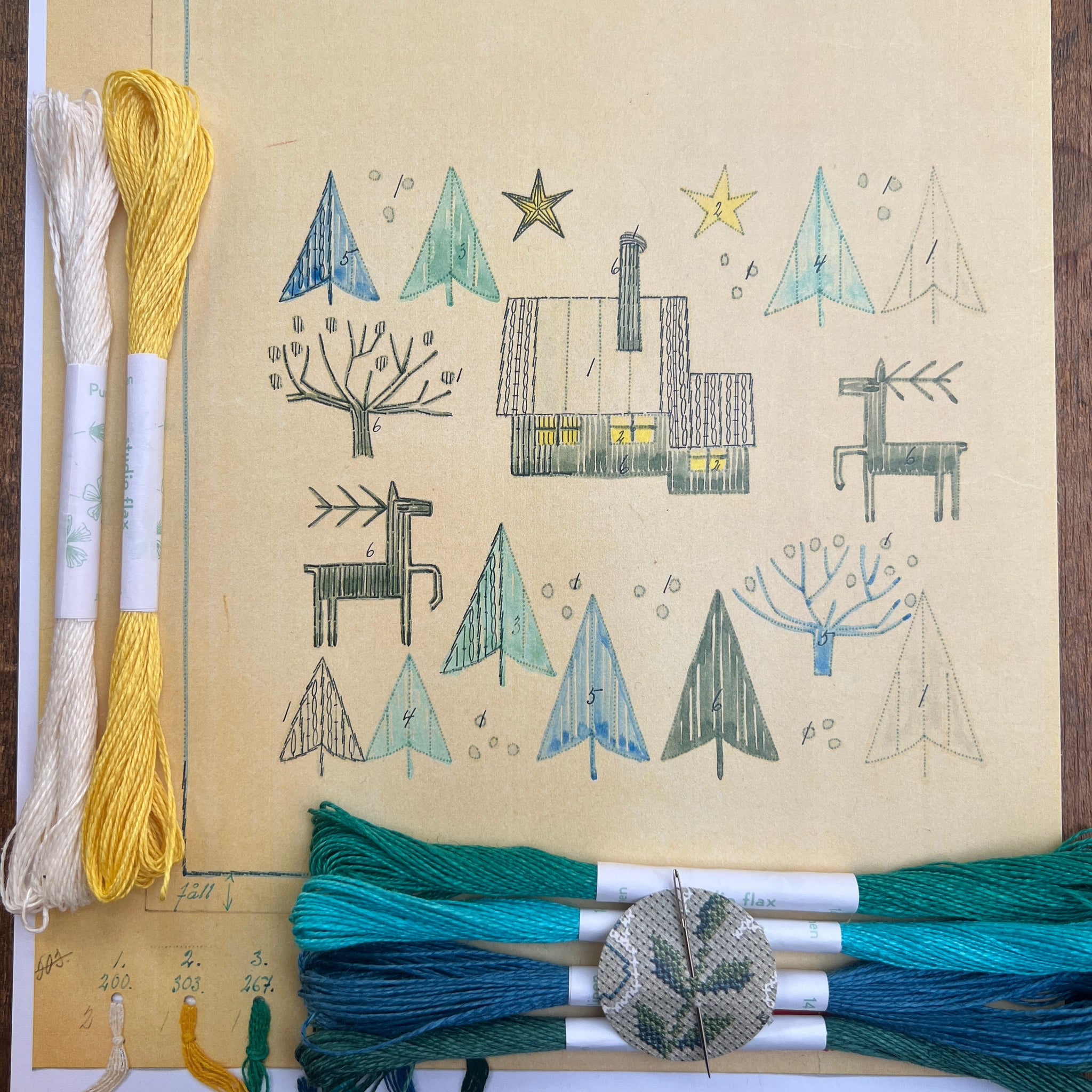 The pattern measures approximately 25 x 20 cm, printed on linen 37 x 40 cm.
