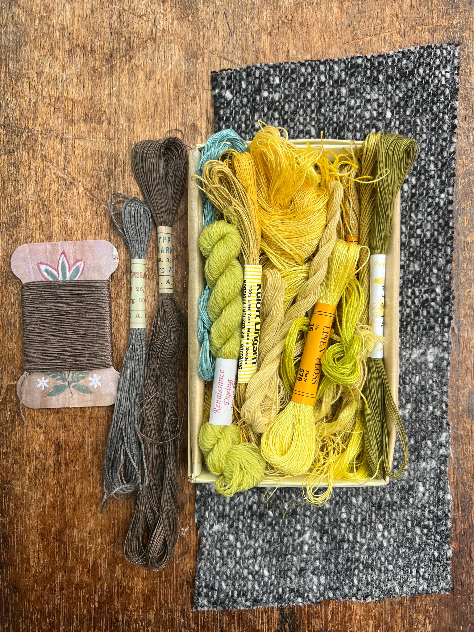 Materials from 1960s stockrooms and our production: linen, silk, wool and cotton.